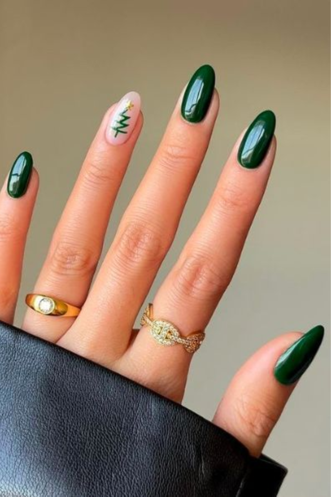 Go bold with dark pink nails and a nude accent finger featuring a single pink heart. It’s understated yet totally adorable—ideal for a more subtle Valentine’s look.