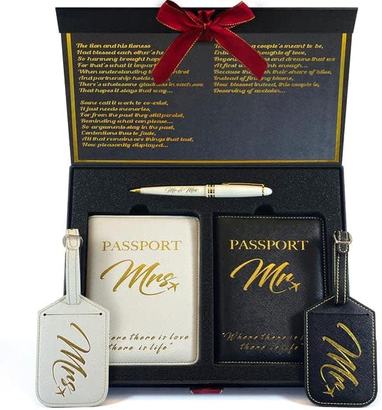 DELUXY Mr and Mrs Luggage Tags & Passport Holder Set