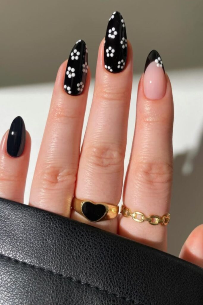 Pair bold Frenchies with dainty bows and playful polka dots for a design that’s straight out of the 1950s. It’s retro-meets-modern perfection on almond nails.