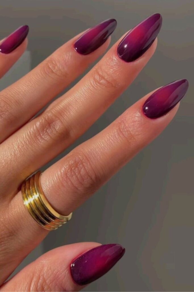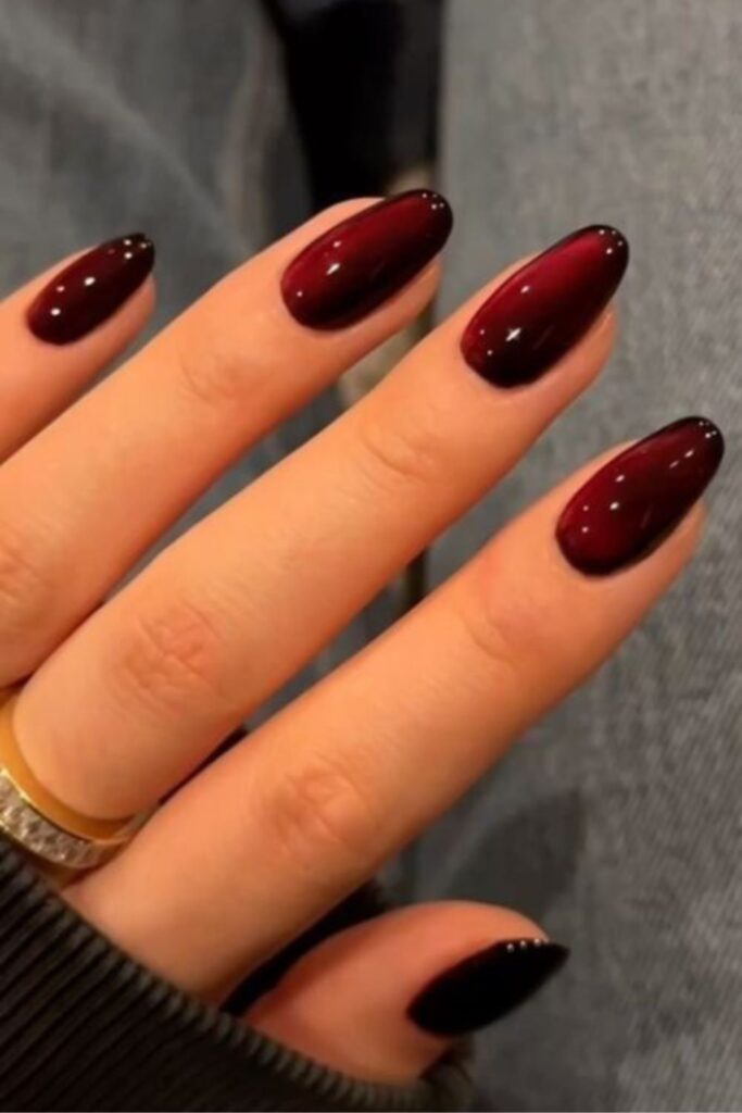 Are red almond nails more your vibe? This juicy take on the iconic glazed donut nail combines deep cherry reds with a glossy finish.