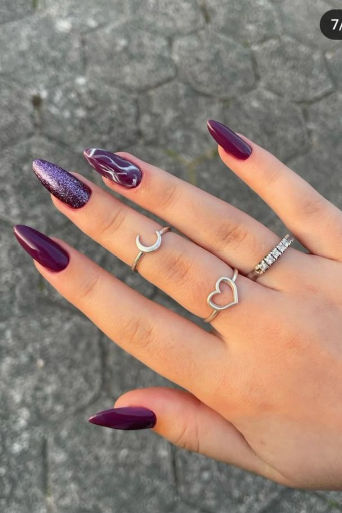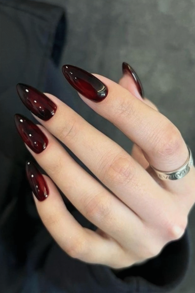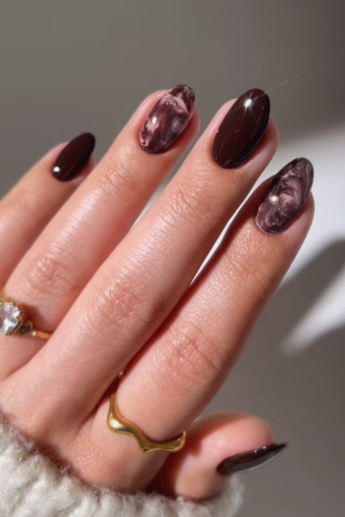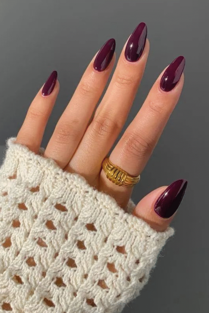 If you love dark shades but want something softer than black, black cherry or deep plum nails are perfect. These fall right into that fancy nails category without trying too hard.