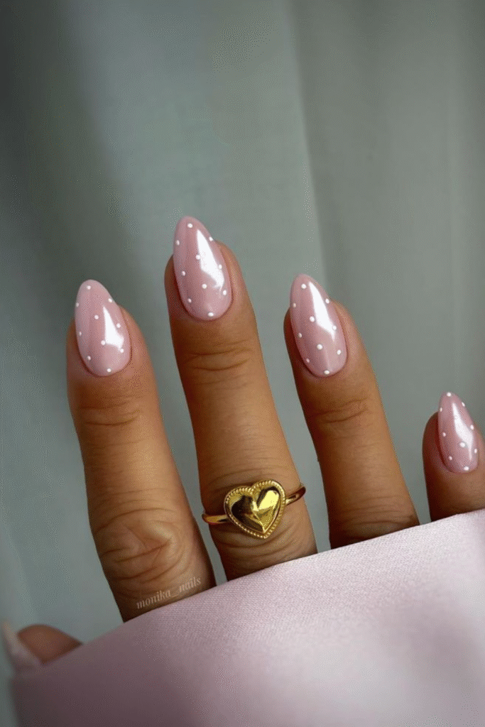 Tiny heart nails on a blush or nude base are perfect if you want something sweet without going over the top. This is one of those cute gel nails looks that works all month long.