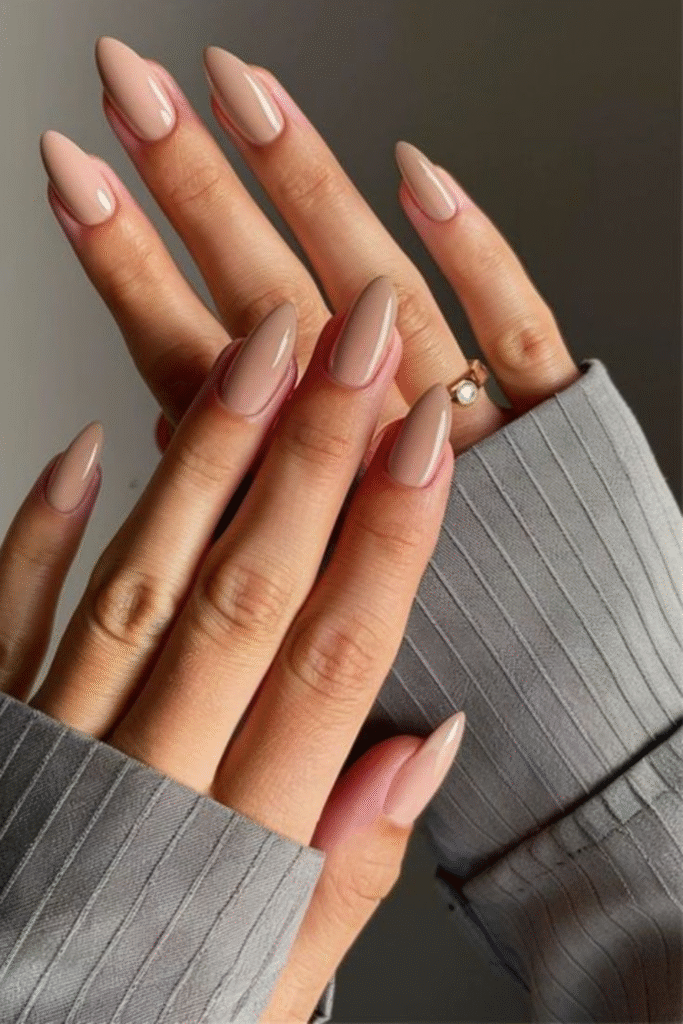 Short February nails don’t have to be boring. Soft pinks, nudes, or sheer finishes keep things fresh and practical.