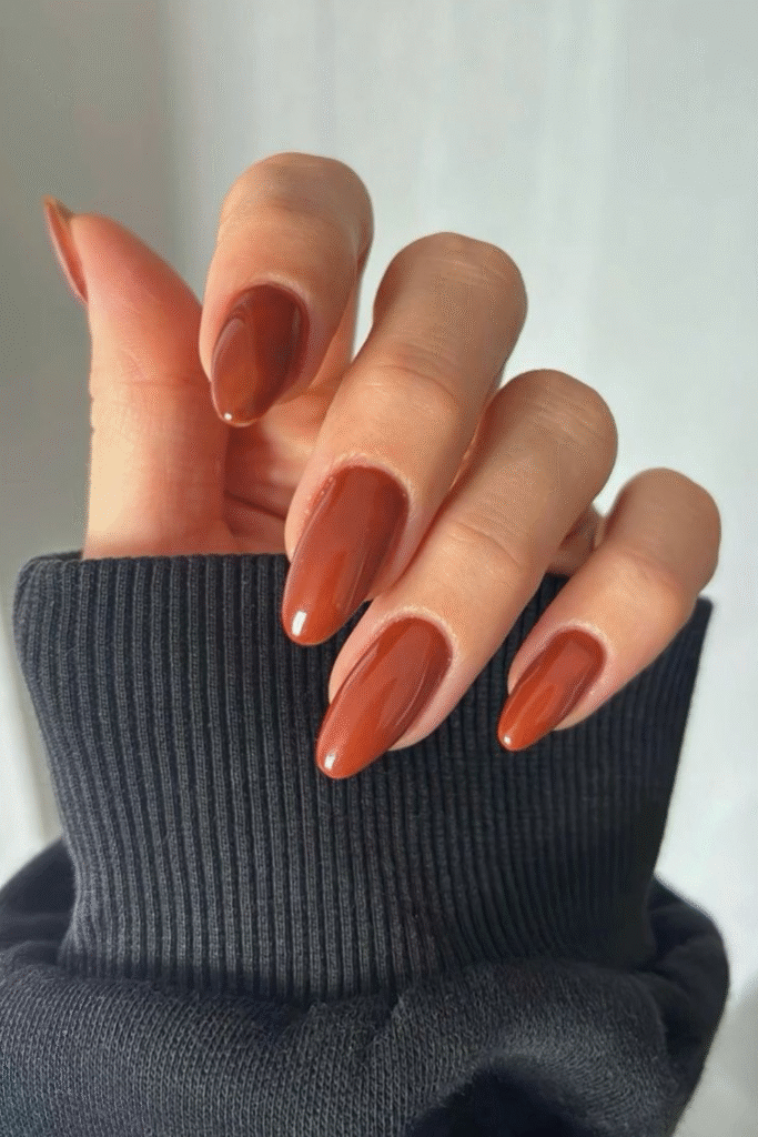 A soft peach-pink shade with a glossy finish is simple, flattering, and perfect for short February nails. It’s one of those February nail colors that looks clean, fresh, and effortlessly cute without needing any extra nail art.