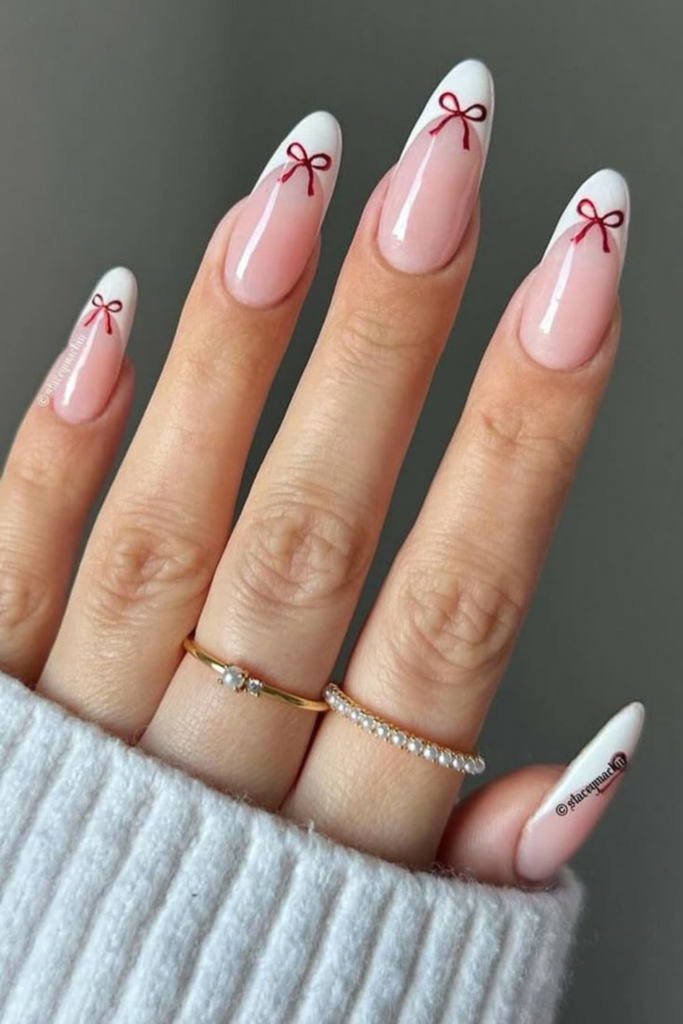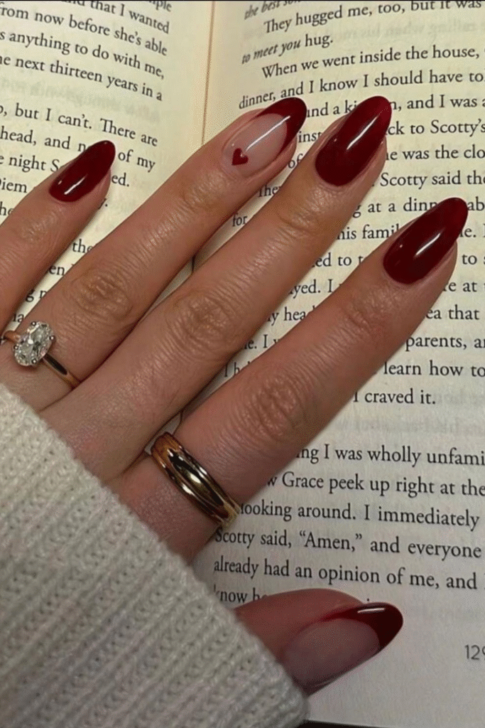 French tip nails paired with red accents feel festive without screaming Valentine’s Day.