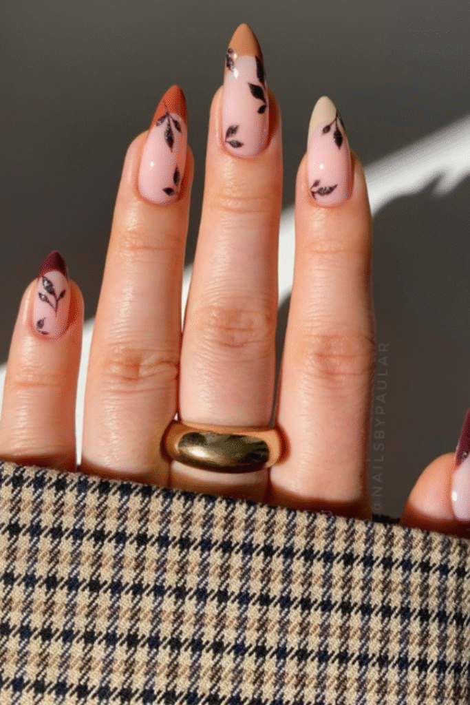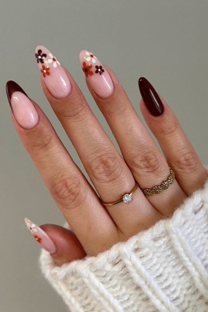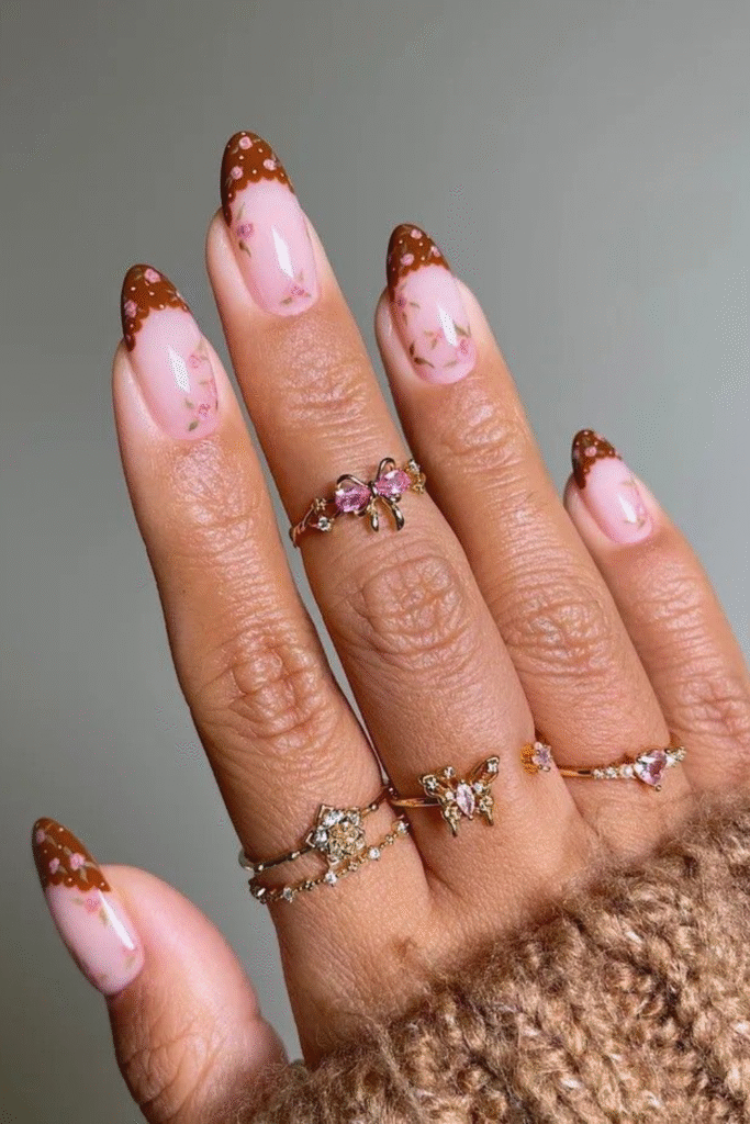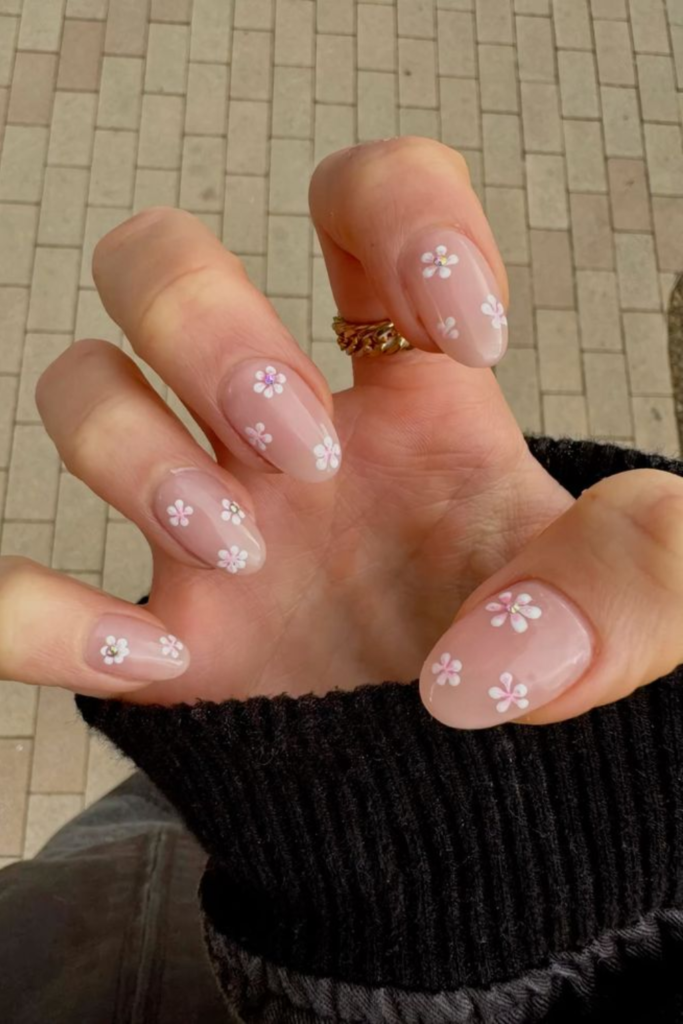 Flower nail designs aren’t just for spring. Soft florals in muted tones make February nail art feel light and cheerful.