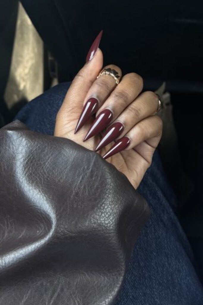 If you want bold and confident, red stiletto nails bring all the drama. Perfect for date nights or when you want fancy nails energy.