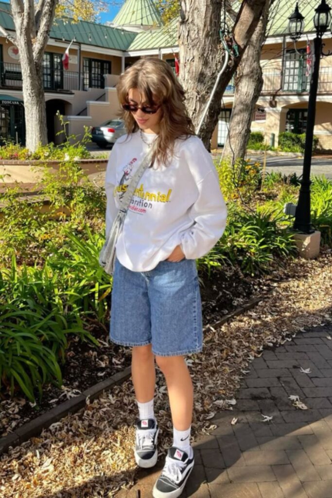 A cardigan layered over a basic tee and mini skirt is that effortless “girl next door” vibe. It’s perfect for casual hangs, study sessions, or coffee shop chic.