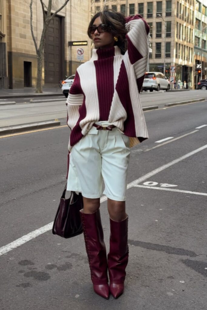 A cozy jumper paired with a pleated mini skirt feels playful but put-together. It’s warm, comfy, and has that preppy-girl aesthetic we all secretly love.