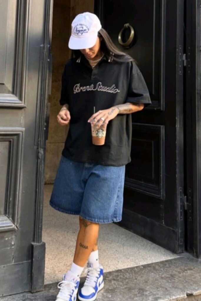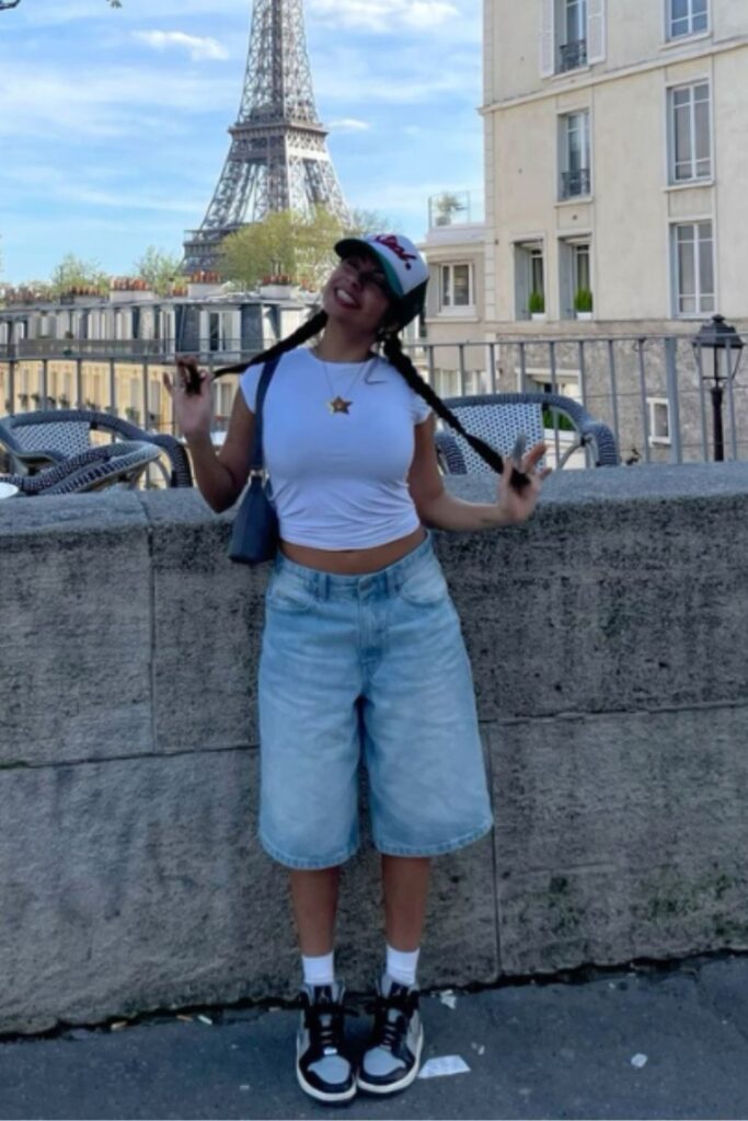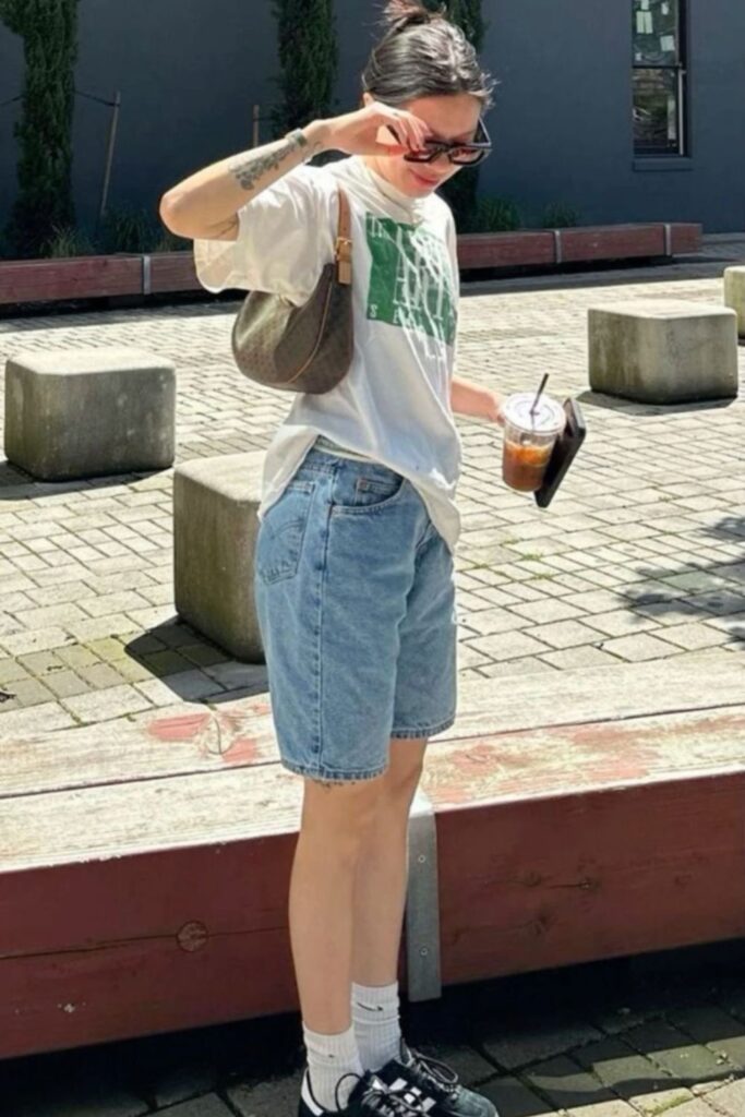 A graphic tee with a mini skirt looks cool, casual, and gives off that “I didn’t try, but I look good” energy. Pair it with your fave chunky sneakers or boots.