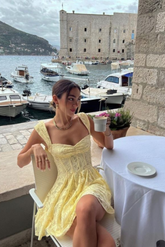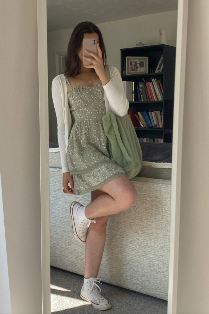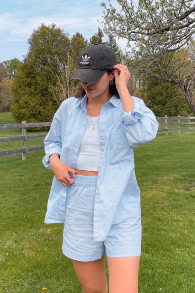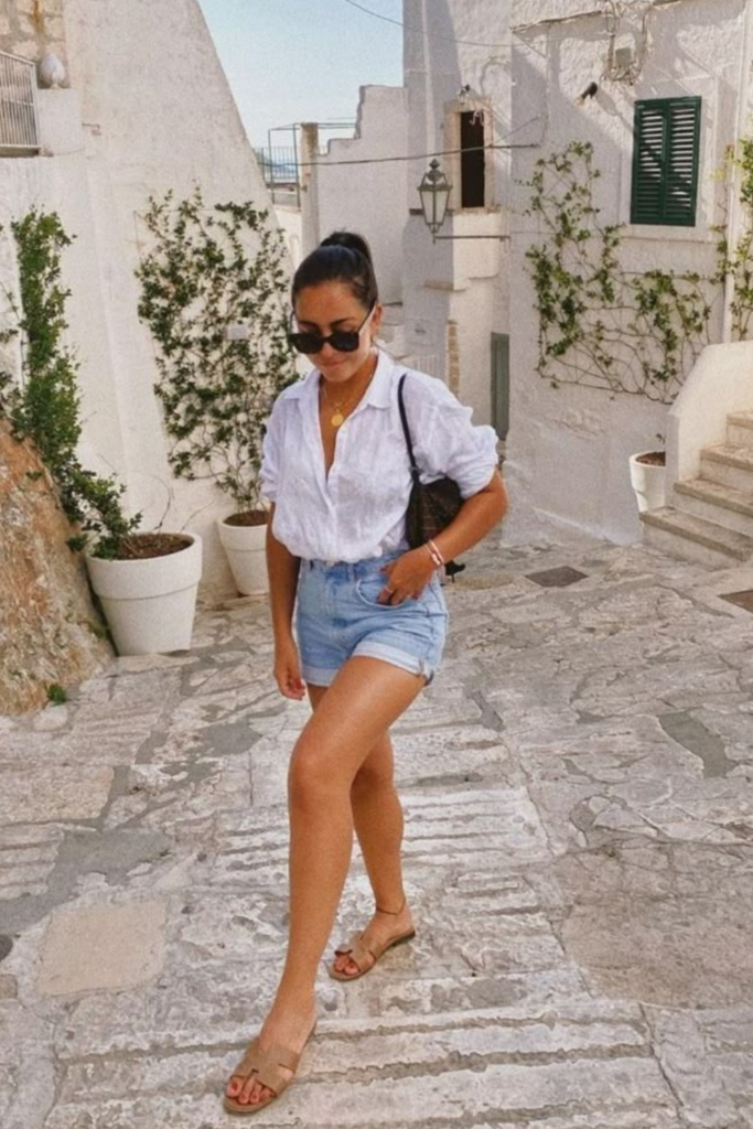 This combo is a little artsy and a lot cool. Pair a simple tube top with a super baggy dress shirt and comfy flats for that easygoing vibe. It looks like you borrowed your partner’s shirt but made it fashion.