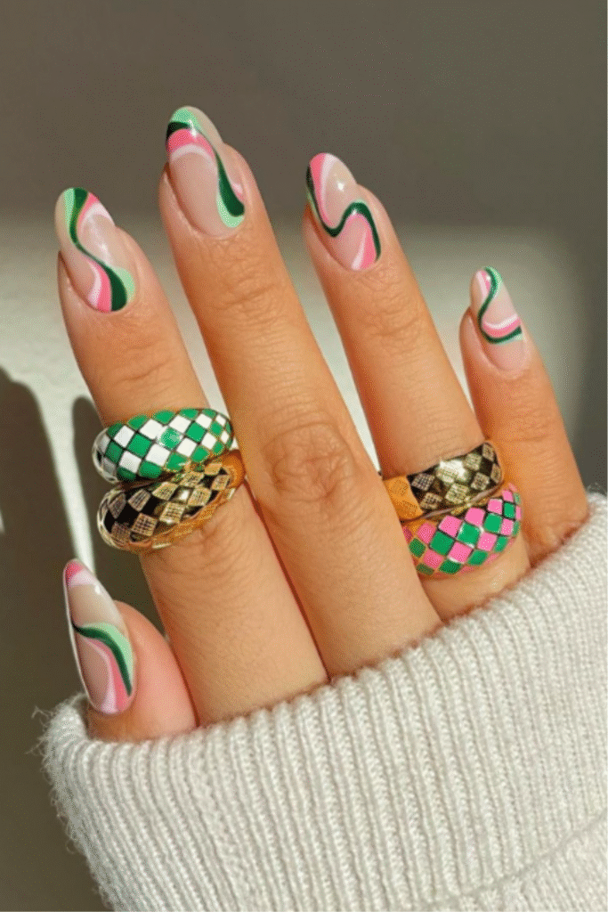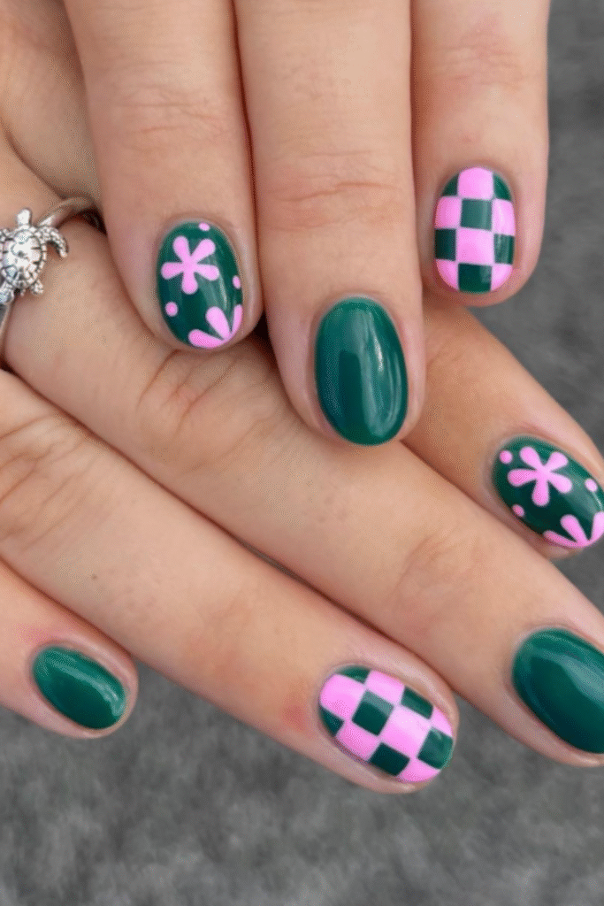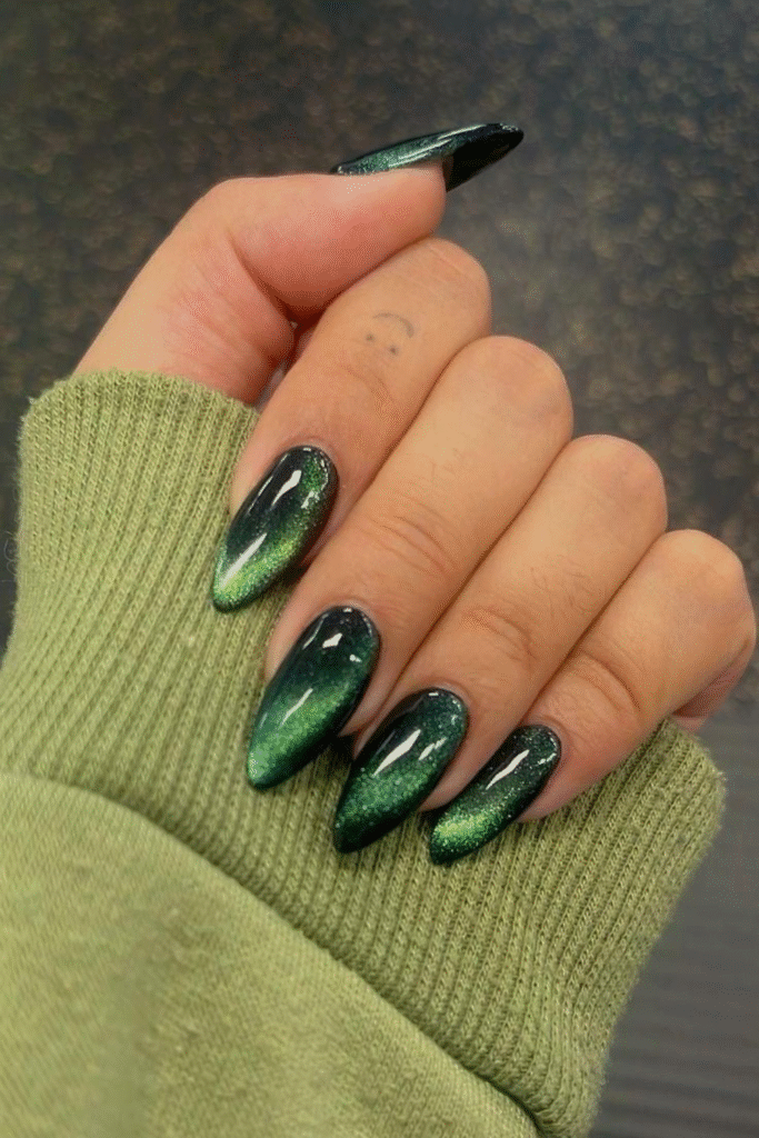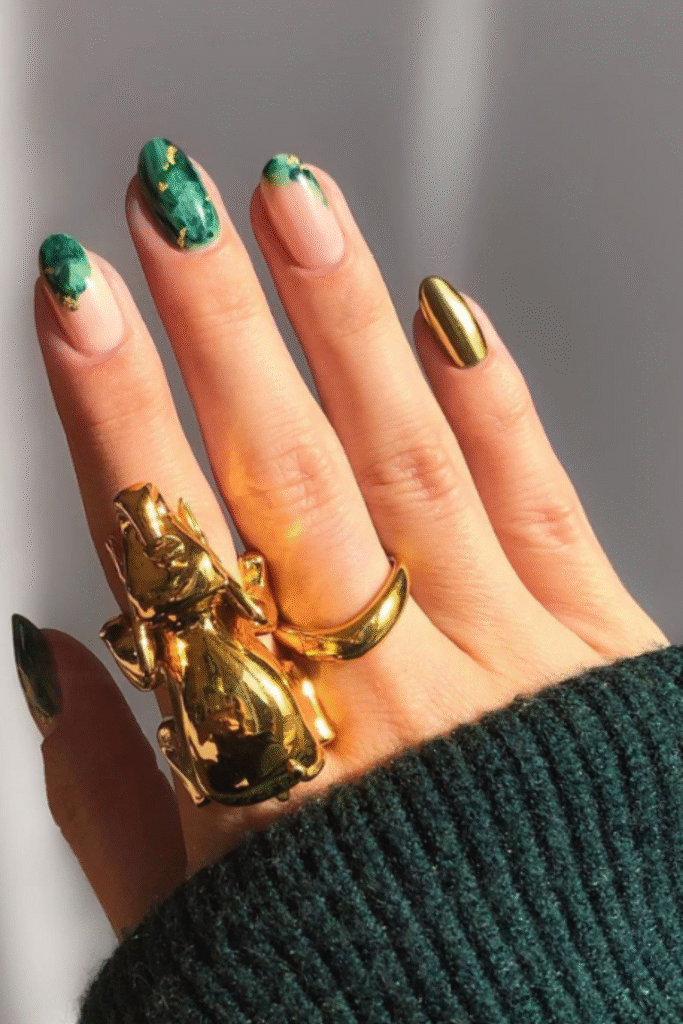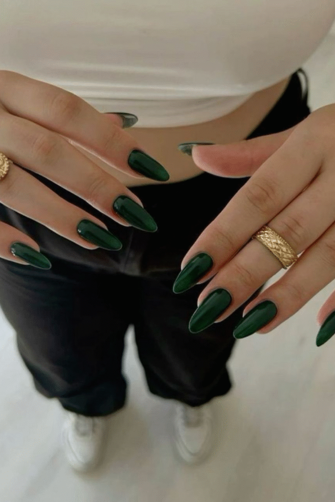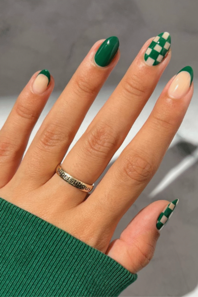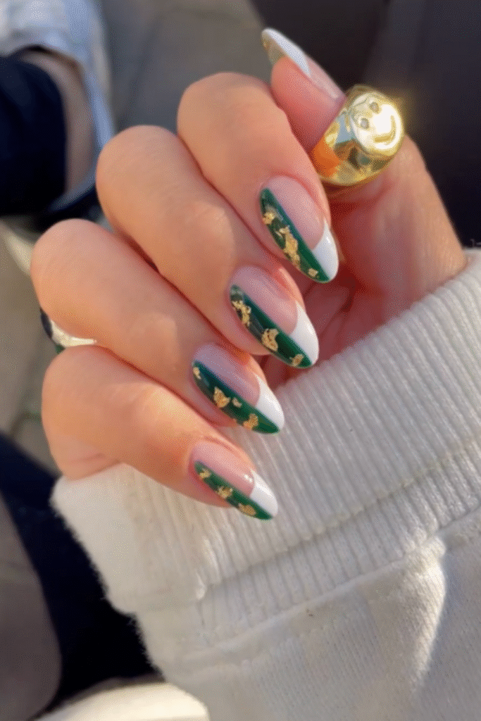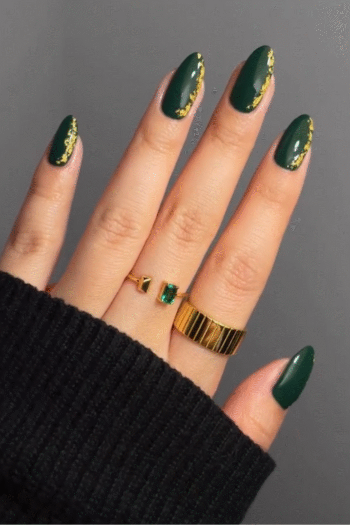 A green sweater paired with a leopard print mini skirt and knee-high boots gives a trendy twist to your fall outfit. The mix of cozy and bold patterns feels festive without being over-the-top. Throw on some gold hoops and you’re instantly the best-dressed guest.