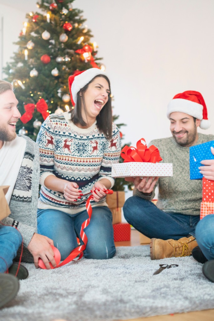 If you’re tired of the typical “open a gift and move on,” try turning it into a game. You can do a Secret Santa, a “white elephant” with a funny twist, or a “gift swap” where everyone rolls dice to decide who gets what next.