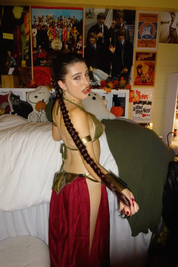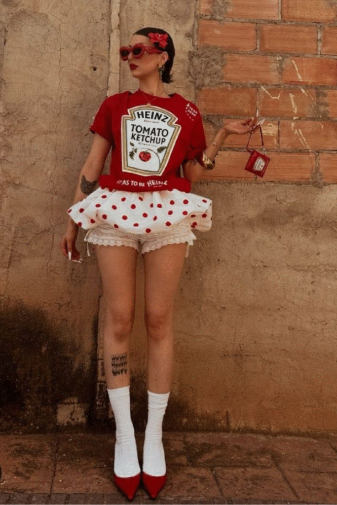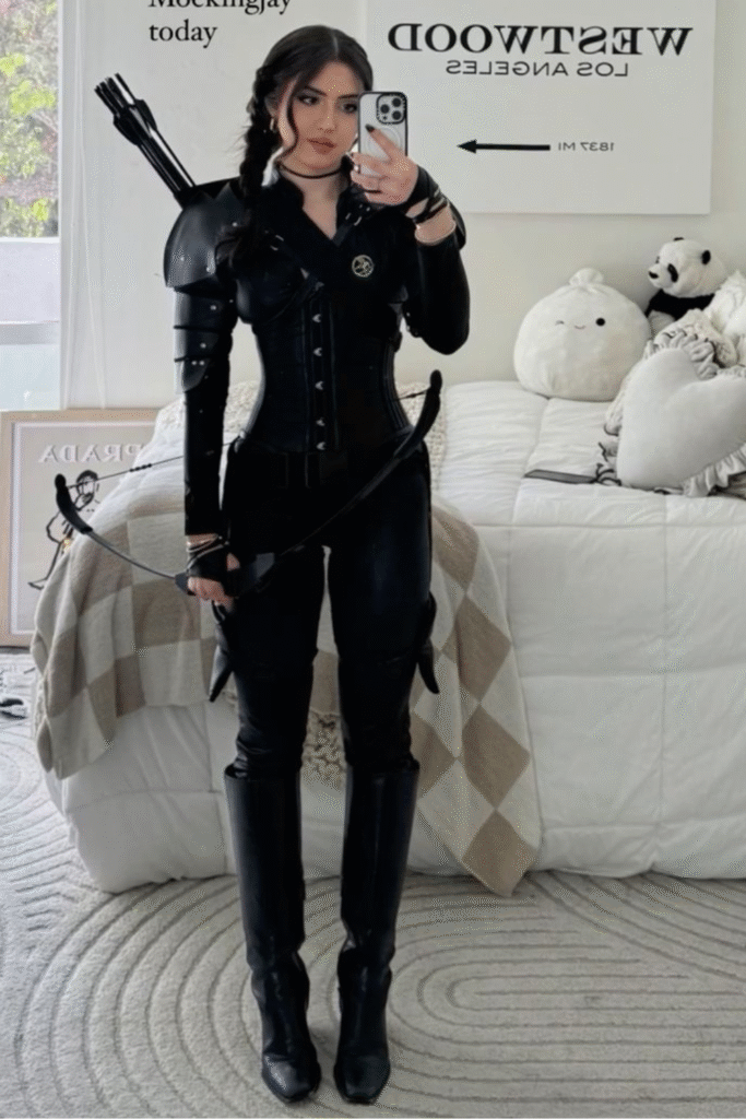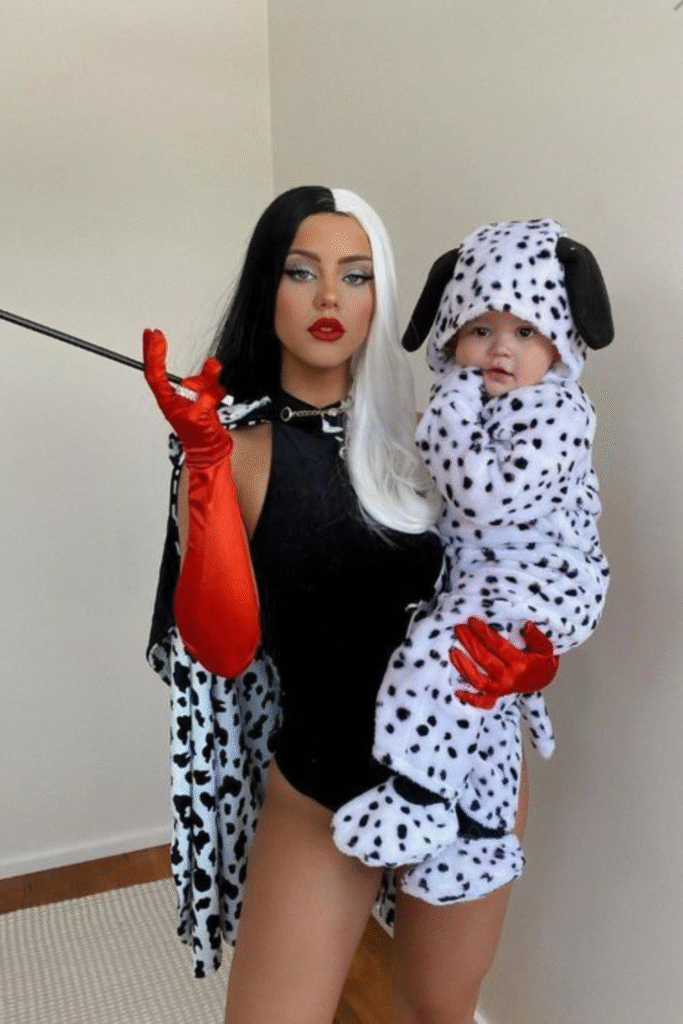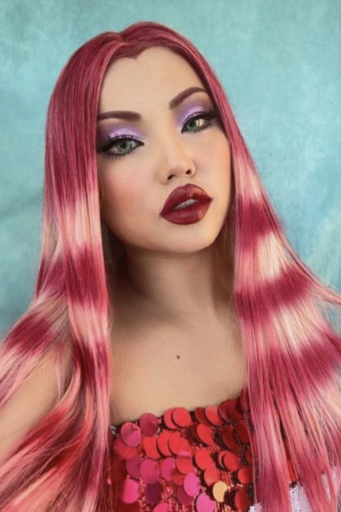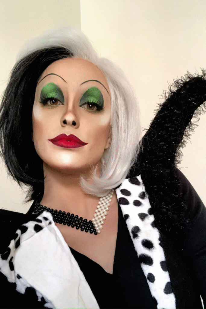 Unleash your inner villainess with bold brows, red lipstick, and a half-black, half-white hairstyle. Add some exaggerated cheek contour for that sharp, dramatic edge. It’s fierce and instantly iconic.