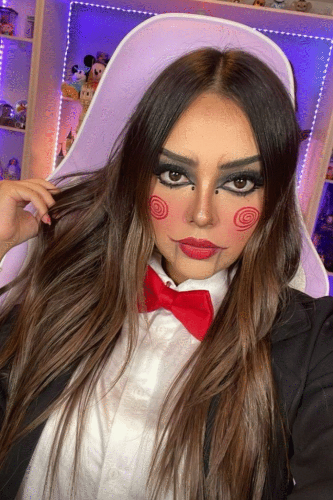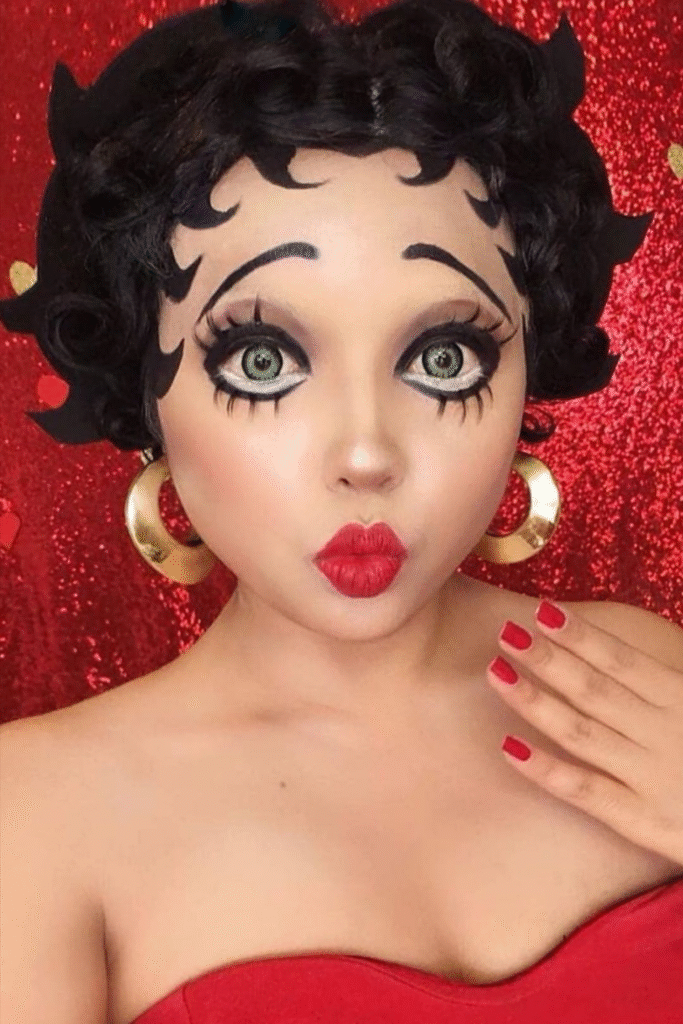 Want something more vintage-cute than terrifying? Go for big, exaggerated lashes, heart-shaped lips, and that classic cartoon doll look. Add a black wig or curls, and you’ll be instantly recognizable.