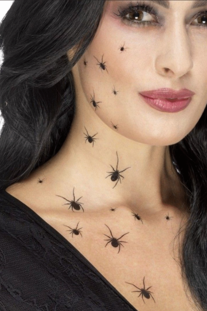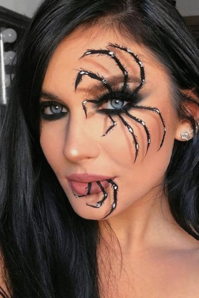 Not into giant nightmare fuel? Go subtle with small painted spiders scattered across your face. It’s creepy but still low-key enough to keep things playful.