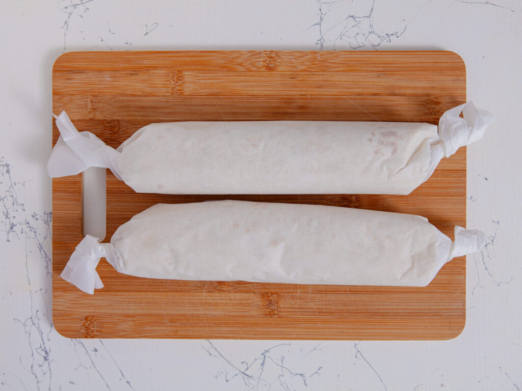 Now here’s the hard part—waiting. Wrap those rolled-up tortillas in parchment paper or plastic wrap and pop them in the fridge for at least 30 minutes. This step helps them firm up so they slice cleanly (and taste even better once everything melds together). You can also leave them overnight if you’re meal-prepping or hosting the next day. Just store them in the fridge until you’re ready.