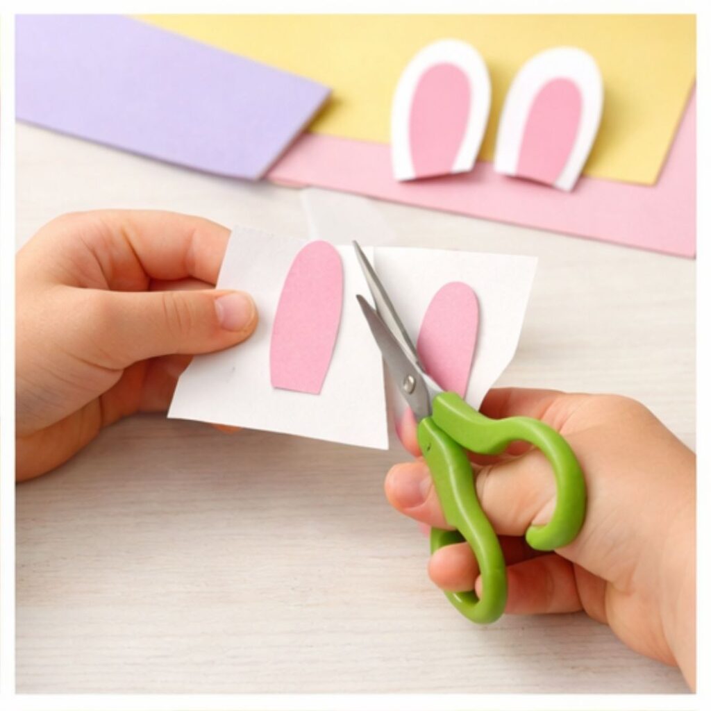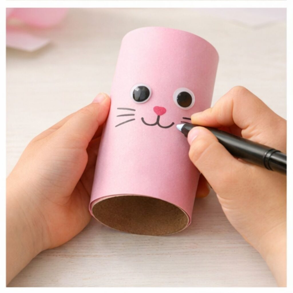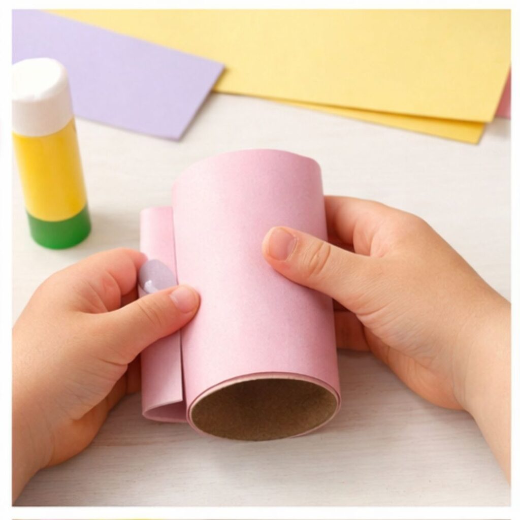 Cut a piece of pastel paper large enough to cover the toilet roll. Let kids glue and wrap it around—this helps develop fine motor skills while creating the bunny’s body.