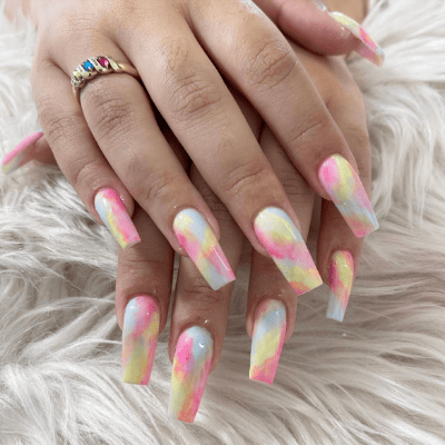 This vibrant tie-dye mani is perfect for bunny day, as it marks the onset of spring and other joyous celebrations.