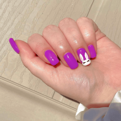 How about a pop of bunny on beautiful bright gel mani to keep your love for the festival muted but also very loud?!