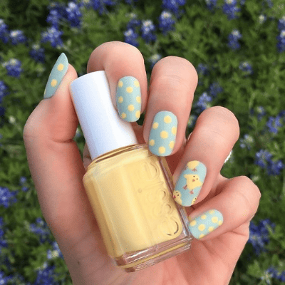 Polka dots are one of the easiest yet cutest designs to amp up your nails. But when you add cute chicks to the mix, you get these adorable easter nails!