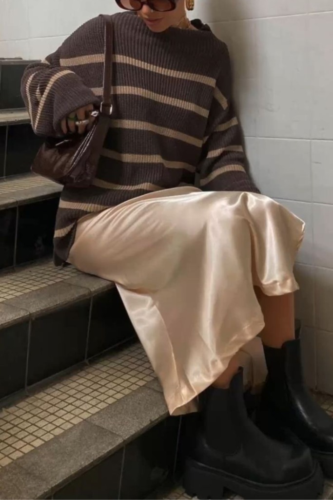 For a more polished look, pair your boots with a midi skirt or tailored trousers.