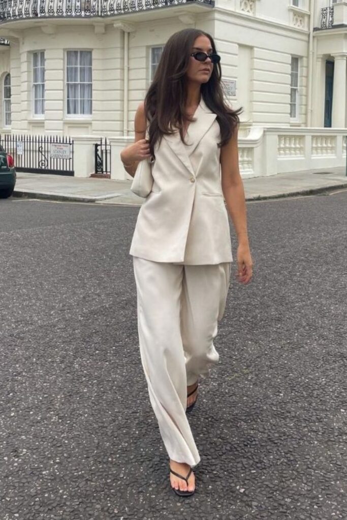 A tailored vest set instantly gives that “put-together without trying” vibe. It leans slightly into menswear but still feels sleek and feminine.