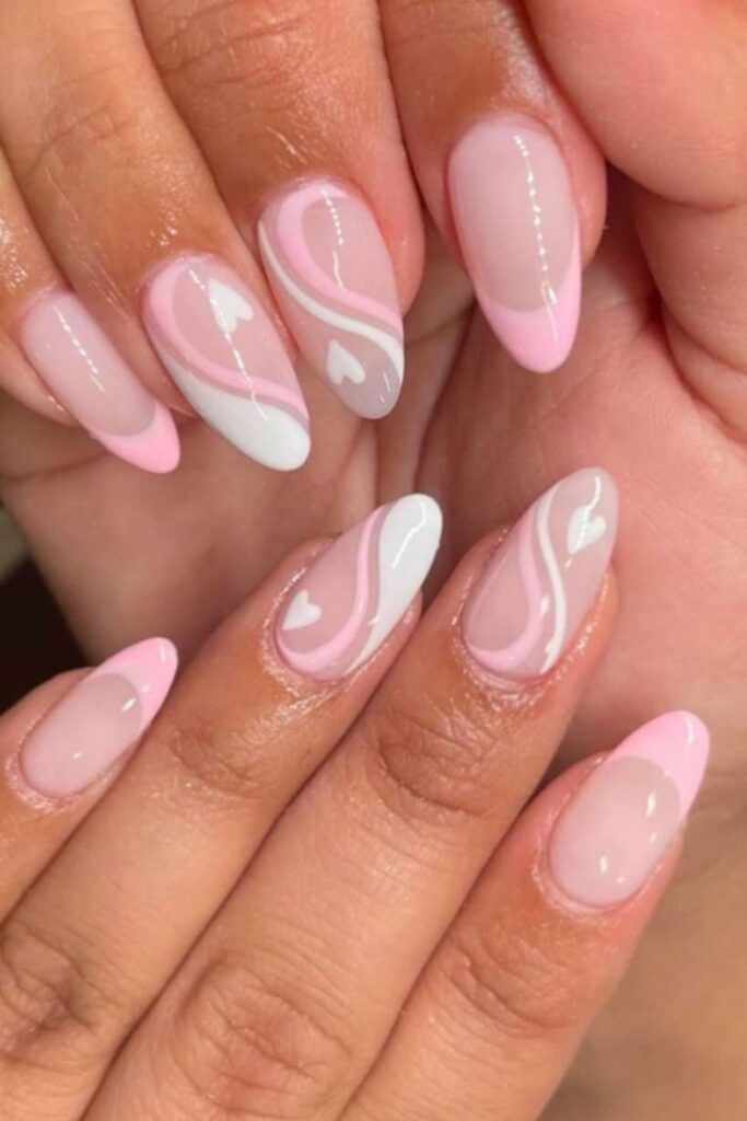 Swirls and hearts come together in the cutest way possible with this pink and white combo. The flowing lines keep it playful, while the tiny hearts add a hint of sweetness that feels fun without being over-the-top. It’s giving flirty summer energy in the best way.