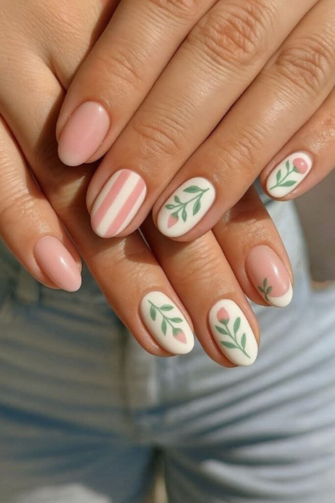 If you love a more minimal aesthetic, this one is for you. A clean nude base paired with small, thoughtfully placed floral accents creates a look that feels intentional without trying too hard. It’s simple, elevated, and effortlessly chic.