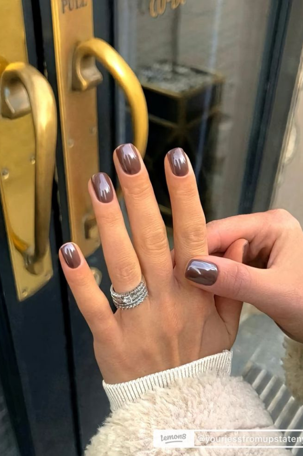 Why it works on short nails: Brown on a short nail reads sophisticated, never heavy. On a long nail it can veer gothic. On a short square or squoval, it’s just quietly excellent.