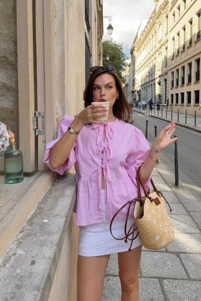If you’re in the mood to be a little extra (and honestly, when aren’t we?), a flirty front-tie top paired with a mini skirt is the move. It’s playful, feminine, and perfect for those sunny spring brunch dates that somehow turn into full-day plans.
