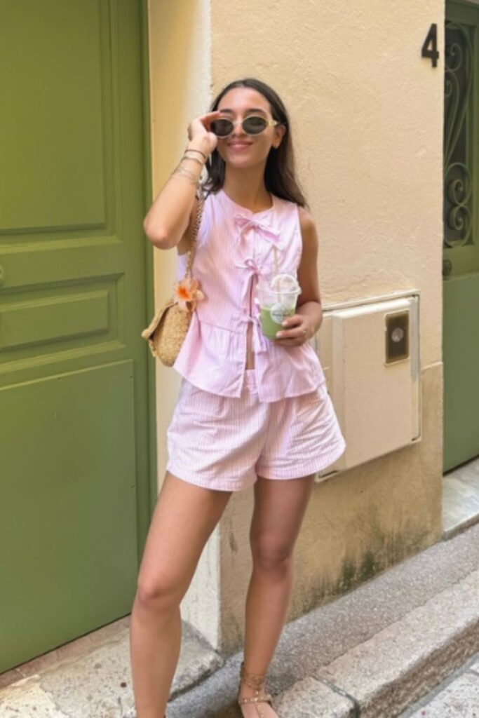 Matching sets are having a moment—and for good reason. A front-tie top with linen shorts is easy, cute, and requires zero effort. Just add sandals and you’re good to go.