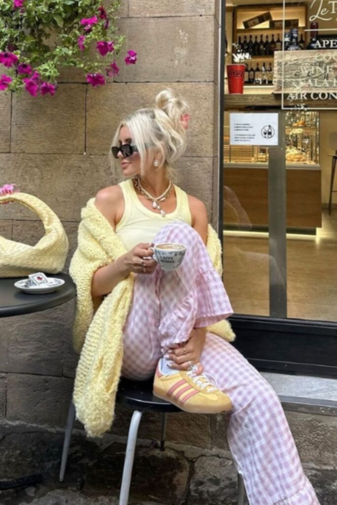 If your vibe is cozy but still cute, this is the one. A lightweight cardigan over a tank with linen pants is comfy, breathable, and ideal for those slightly cooler spring mornings.