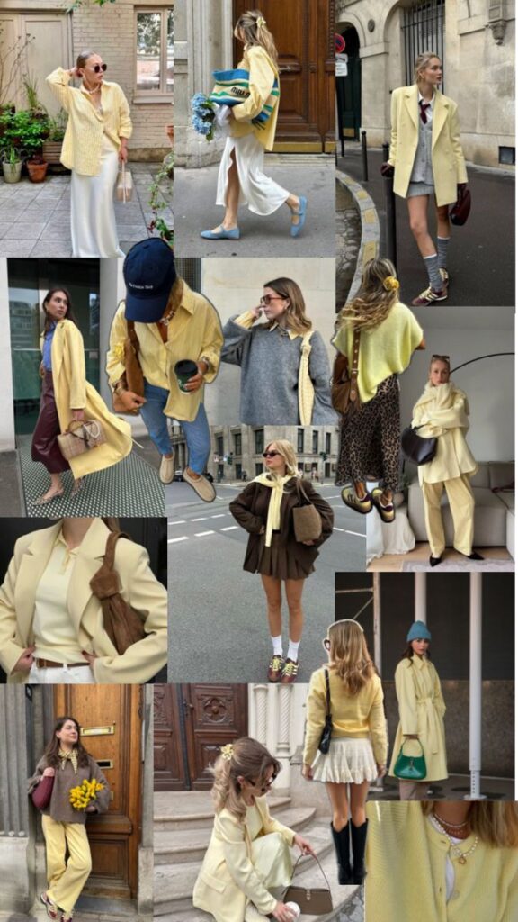 Pro tip: Choose silky or ribbed textures to keep the shade feeling luxe, not lemony. And if you’re new to the color? Start with accessories — a buttery bag or ballet flats feel chic and subtle.
