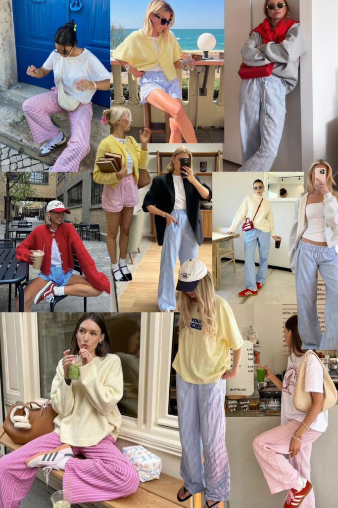 Instead of sharp nautical stripes, Spring 2026 brings dreamy, whisper-thin stripes in muted tones. Think barely-there lines on breezy shirts, dresses, and sets — refined, romantic, and totally wearable.
