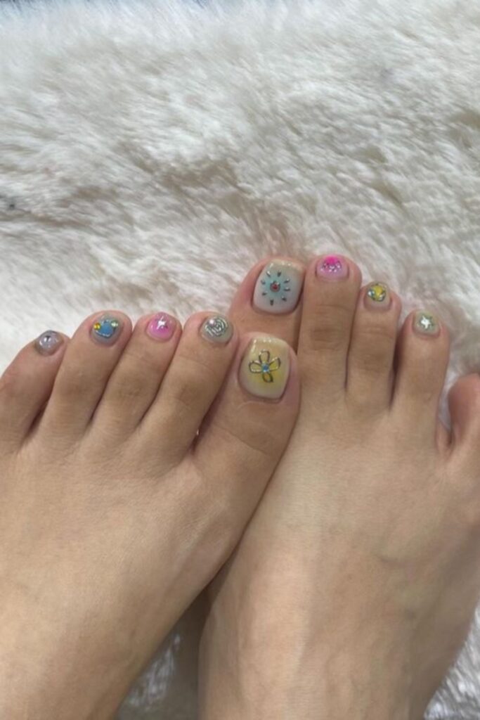 I started noticing the cutest summer toe nails all over—tiny florals, pastel swirls, glossy nudes with the tiniest sparkle—and I had a moment. Like… since when did toe nails get this cute?! It’s giving main character energy, but for your feet, and I’m honestly here for it.