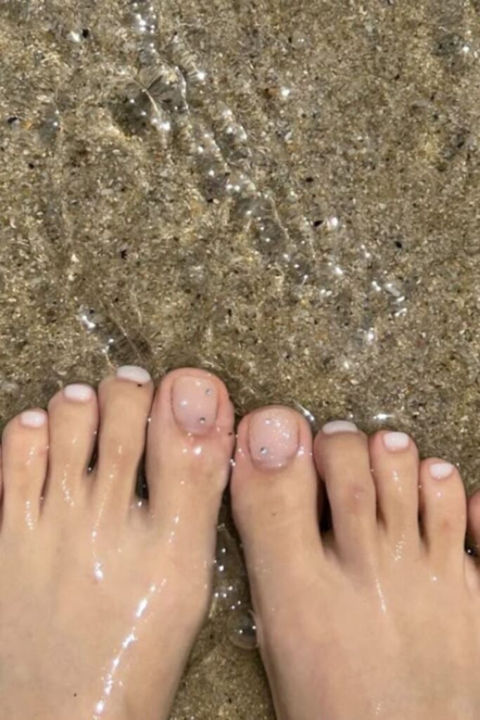 This look catches light in the prettiest way and instantly elevates even the simplest sandals. Ideal if you like a little sparkle without going full glam; keep the chrome soft and let the rhinestones stay minimal for a luxe summer pedi.
