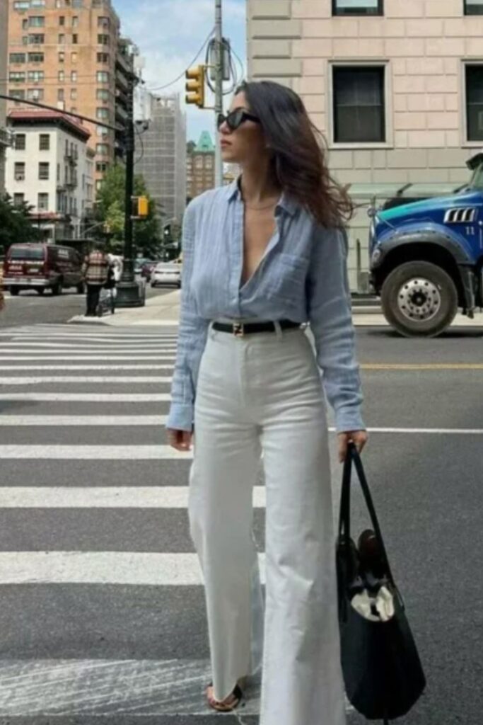 A linen shirt with white jeans is the definition of light and breathable summer dressing. It’s perfect for hot days when you still want to look clean and professional. Roll up the sleeves and keep the styling minimal for that effortless vibe.