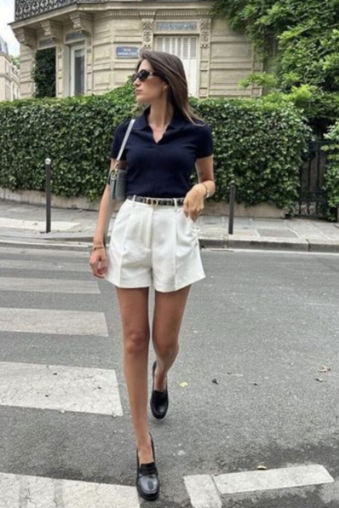 A striped blouse paired with tailored shorts is light, breezy, and still looks put-together. It works especially well for summer Fridays or semi-casual offices. Keep the stripes subtle and the shorts structured so the outfit feels intentional.