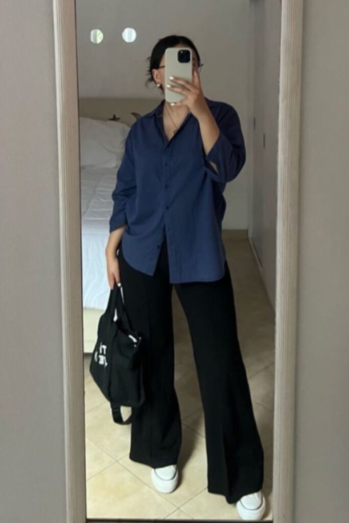 If staying cool is the goal, linen is your best friend. A lightweight linen shirt paired with wide-leg pants feels airy, relaxed, and still totally work-appropriate. It’s an easy go-to for hot days when you want comfort without losing that polished edge.